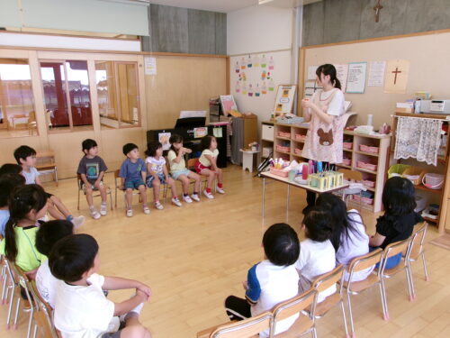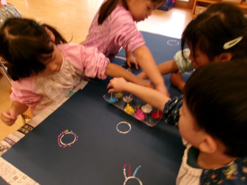 お店屋さんごっこはあと何日か、指で数えるにじ組さん。わくわくが止まりません。金曜日が待ち遠しいですね!