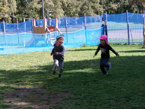 朝晩は寒く、秋の訪れを感じますが、気持ちのいいお日様の下でこども達は元気に遊んでいます。