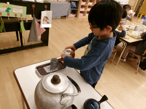 こどもたちが楽しみにしているお店屋さんごっこがあります!前日の今日も、ホールに集合!