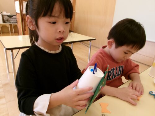 来週持ち帰ります。折り紙を折り、飾りつけをしました☆