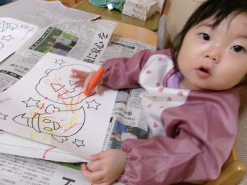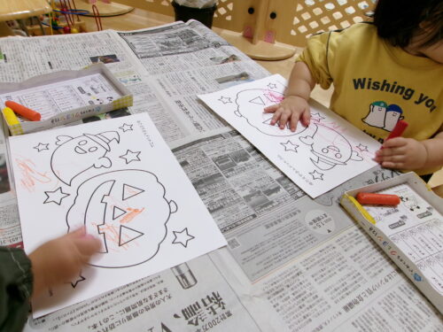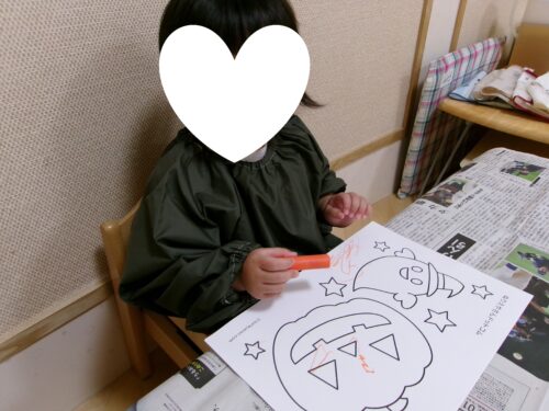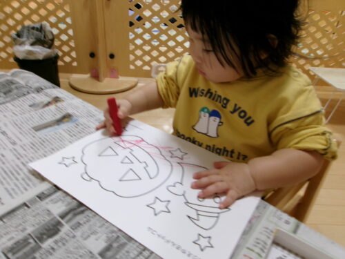 10月の終わりに、ハロウィンのぬり絵をしました!