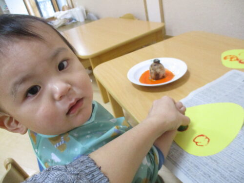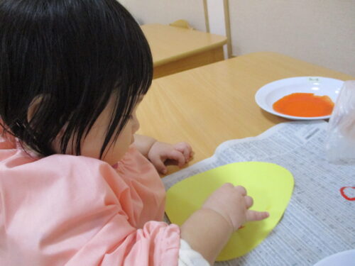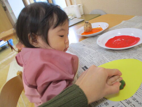 一人でぺったん…!先生と一緒にぺったん…!上手に出来ました♪