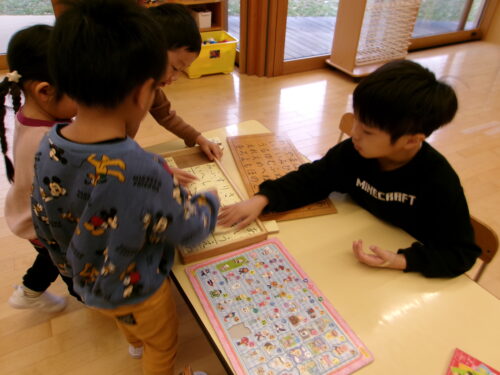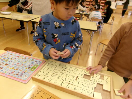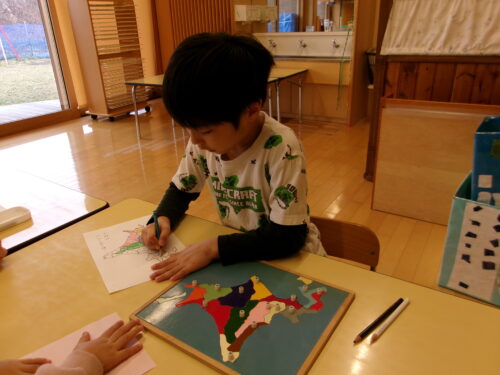 続いてお仕事の様子。日本地図に取り組んだり、平仮名に挑戦したり…!頑張っています♪
