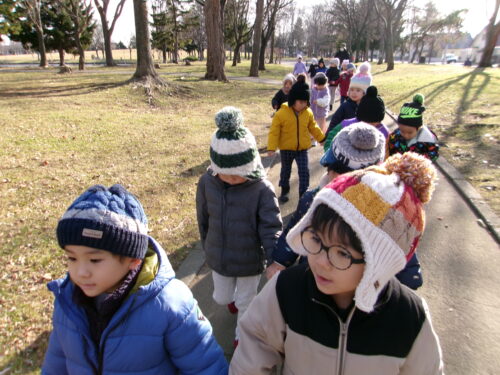 発表会練習を頑張っている年中さん。頑張っているから明日はお出かけするよ~!とお話しすると「やった~~~~!」と大盛り上がり。当日は沢山身体を動かし、楽しく遊ぶことが出来ました♪