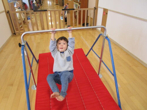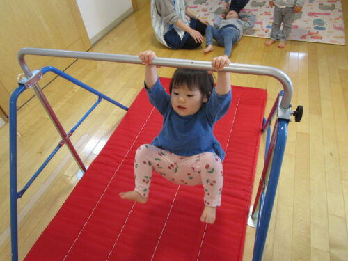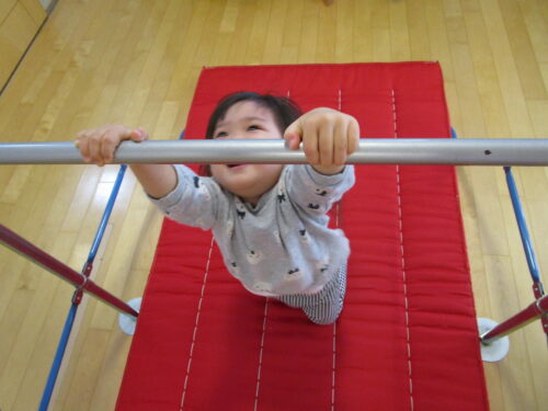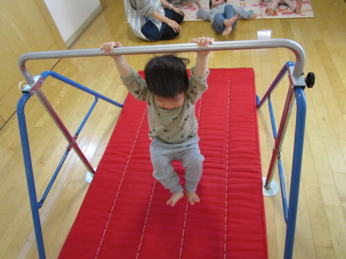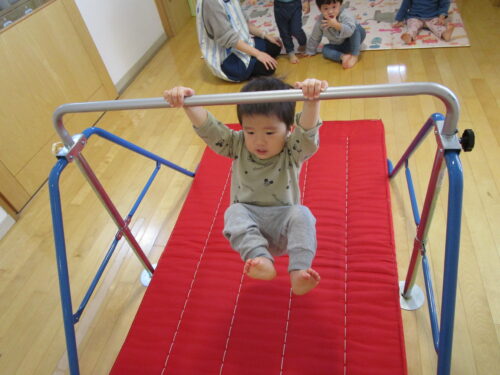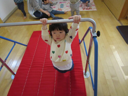 鉄棒にぶら下がることもずいぶん上手になりました。