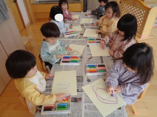こちらは、節分に向けて「鬼のお面製作」をした時の様子です。