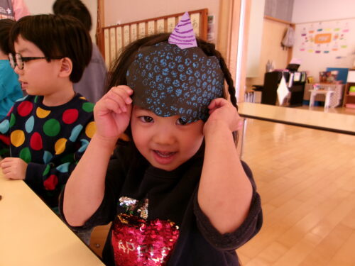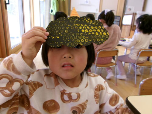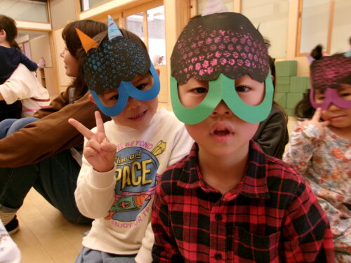 年中さんはメガネ型のお面でした♪