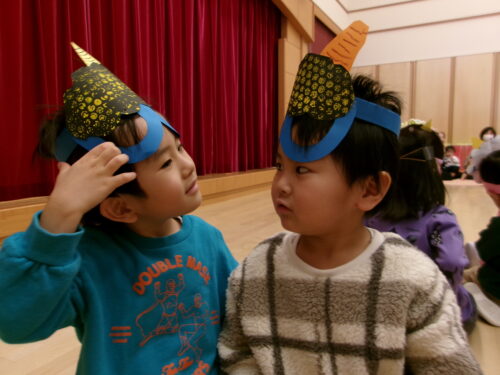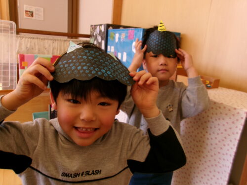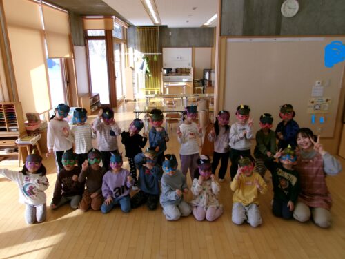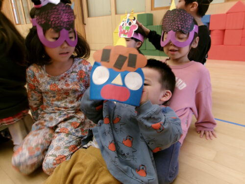 早速、鬼のお面を作ったりレッツ体操をしたり…