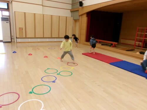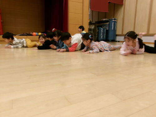 3学期が始まり、元気いっぱいに活動する年中さん。