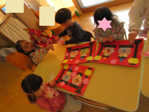 今、ほし組は皆の作ったお雛様がお部屋を明るく華やかにしてくれていますよ。