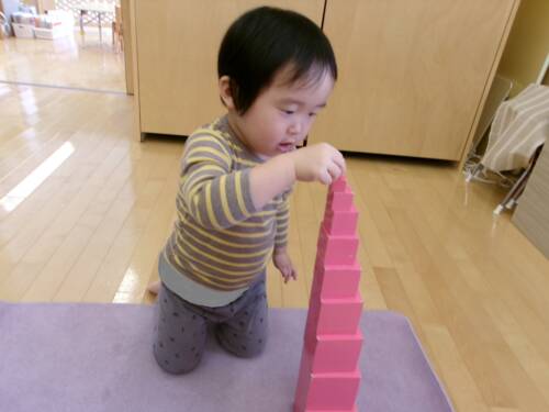 朝の時間は「お仕事」をしたり、その後はホールで遊んだりしています。そして朝おやつを食べた後、