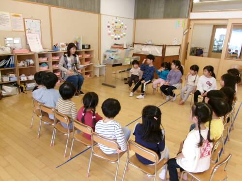 先日は9人全員でそら組さんの朝の会に参加させてもらいました。