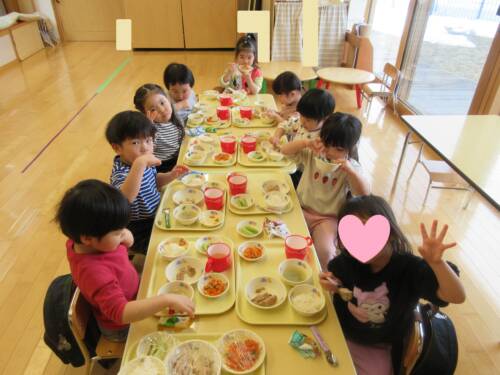ほし組のお部屋で皆で食べる給食はこの日が最後となりました。いつも自分で好きな席を選んで。