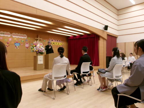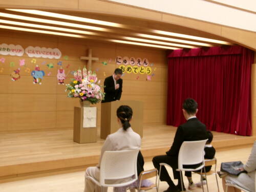 園長先生のお話と神父様もいらしてお祝いの言葉をいただきました。