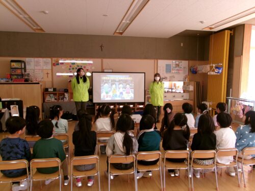 映像をみたり、クイズをしながら楽しく学びました。